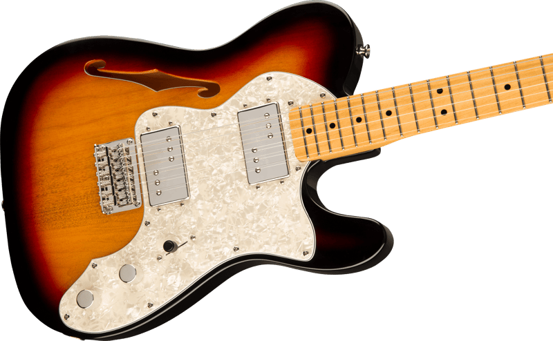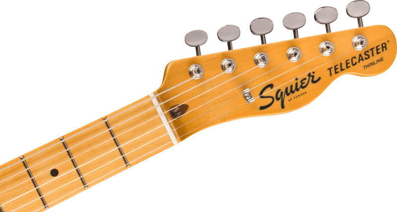 The Classic Vibe '70s Telecaster® Thinline is a faithful nod to the 1970s evolution of the Tele®, creating massive tone courtesy of the semi-hollow body and dual Fender-Designed Wide Range humbucking pickups. Player-friendly features include a slim, comfortable "C"-shaped neck profile with an easy-playing 9.5"-radius fingerboard and narrow-tall frets, as well as a vintage-style Telecaster bridge with a string-through-body design and individual steel saddles for precise adjustment. This throwback Squier model also features 1970s-inspired headstock markings, rich-looking nickel-plated hardware and a slick vintage-tint gloss neck finish for an old-school vibe.