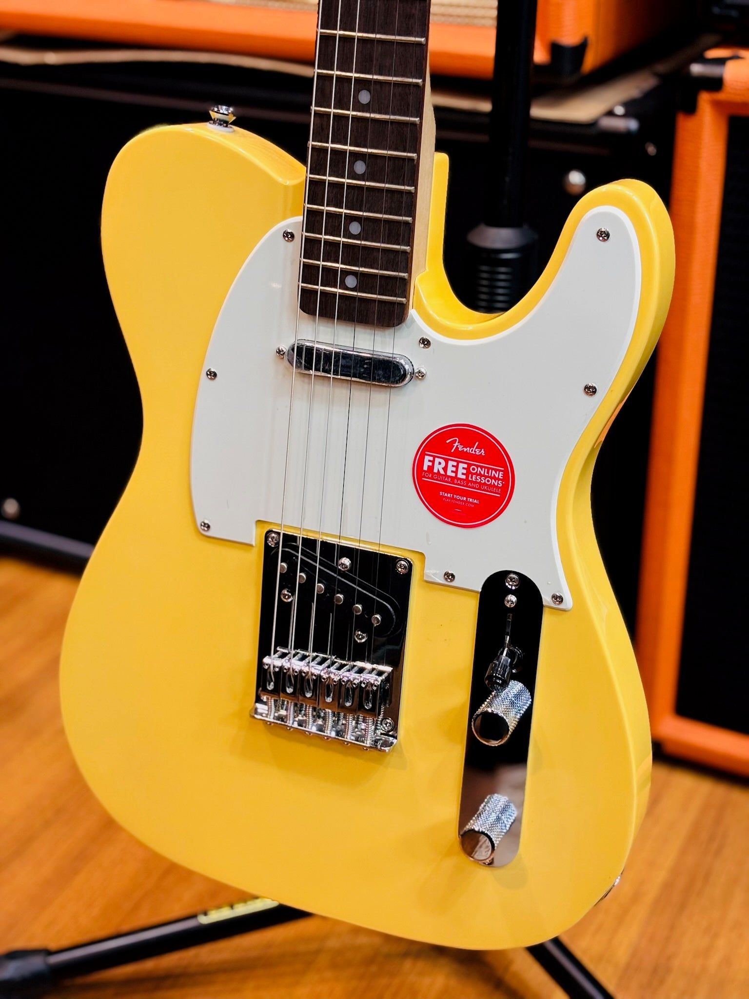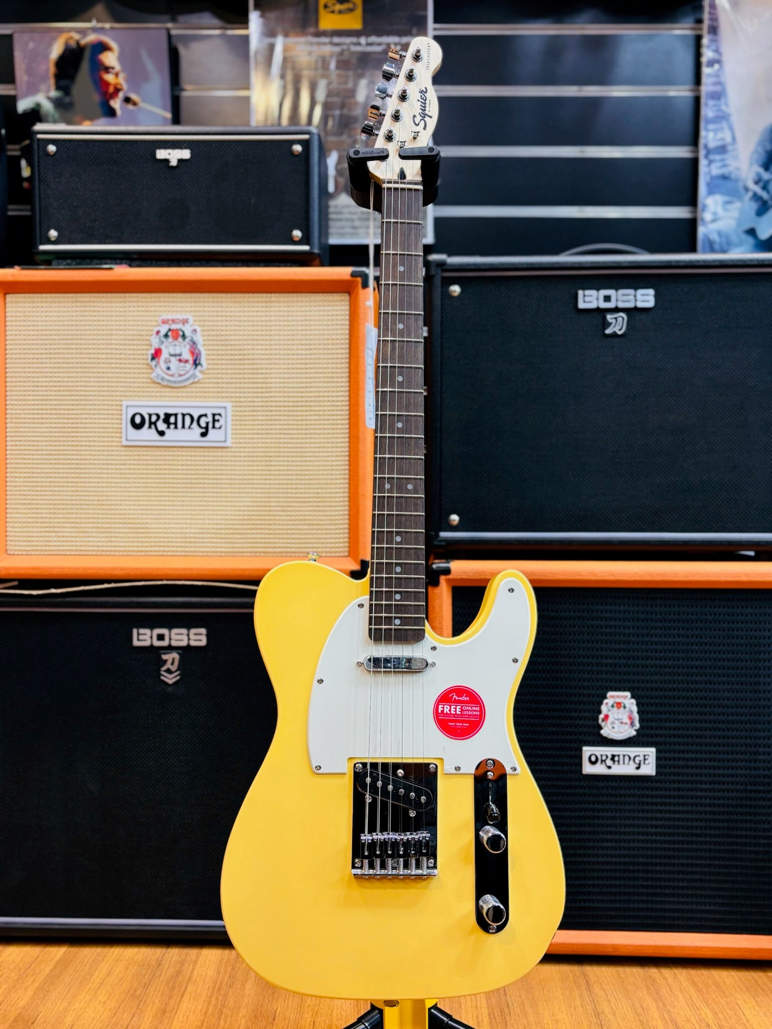 The Squier FSR (Factory Special Run) Bullet Telecaster in Vintage White offers classic Telecaster aesthetics and tone at an accessible price point. Designed for players seeking an affordable, stylish, and versatile instrument, this model features a thin and lightweight poplar body, making it comfortable for extended playing sessions.